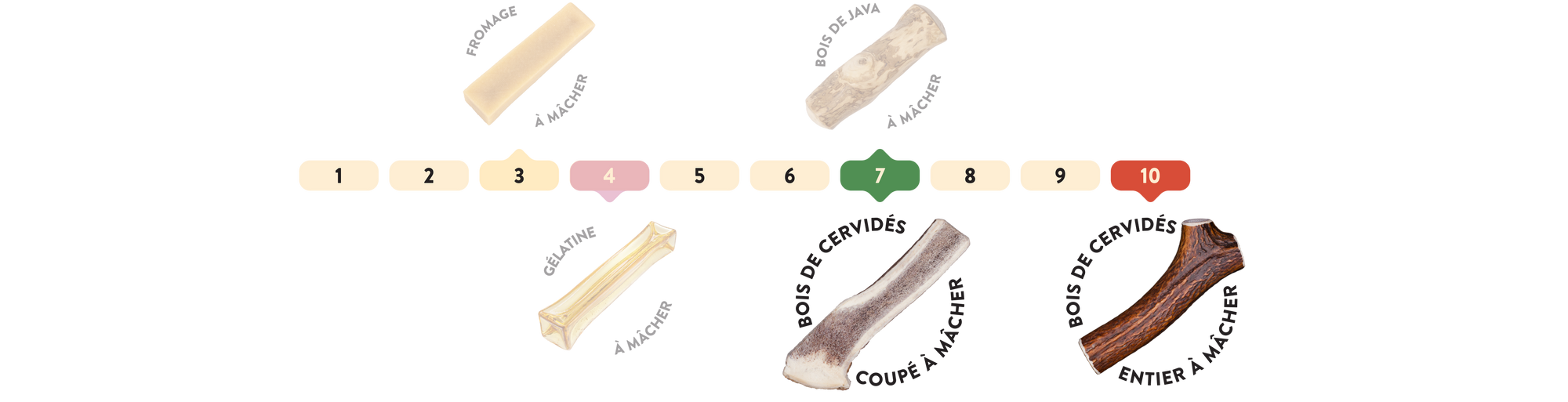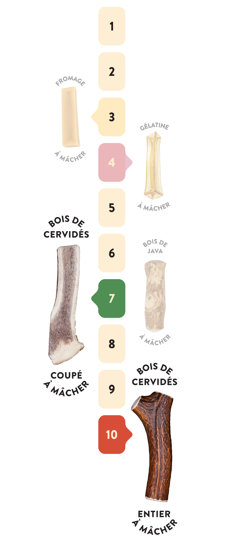 Sélectionnez le format idéal en fonction de l’âge, du poids, de la race et du style de mastication de votre chien.